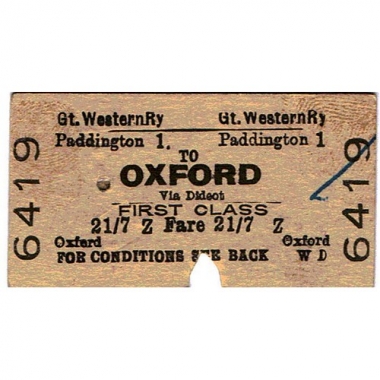 Travel Ticket, GWR, Paddington - Oxford, Serial no 6419