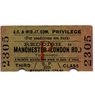 Travel Ticket, GC & Mid Jt Com, Reddish - Manchester (London Rd), Serial no 2305