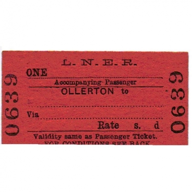 Travel Ticket, LNER, Ollerton to , Accompanying Passenger - One....., Serial no 0639