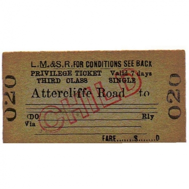 Travel Ticket, LM&SR, Attercliffe Road - , Serial no 020
