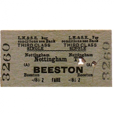 Travel Ticket, LM&SR, Nottingham - Beeston, Serial no 3260