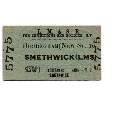 Travel Ticket, LM&SR, Birmingham (New St.) - Smethwick (LMS), Serial no 5775