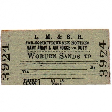 Travel Ticket, LM&SR, Woburn Sands - , Serial No 3924