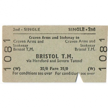 Travel Ticket, BRB, Craven Arms and Stokesay - Bristol T.M., Serial No 1081