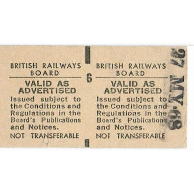 Travel Ticket, BTC(M), Nottingham (Victoria) - Grantham, Serial No 6525