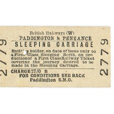 Travel Ticket, BR (W), Paddington - Penzance, Sleeping Carriage, Serial No 2779
