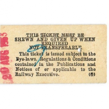 Travel Ticket, BTC(E), Sheffield (Victoria) - Grantham, Serial No 0056