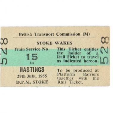 Travel Ticket, BTC (M), Stoke Wakes - Hastings, Serial No 528