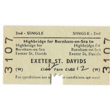 Travel Ticket, BRB (W), Highbridge for Burnham-on-Sea - Exeter St. Davids, Serial No 3107
