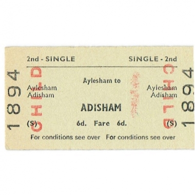 Travel Ticket, BRB(S), Aylesham - Adisham, Serial No 1894