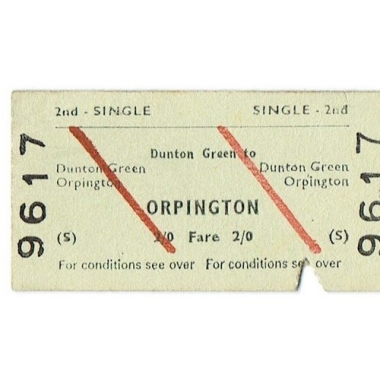 Travel Ticket, BRB(S), Dunton Green - Orpington, Serial No 9617