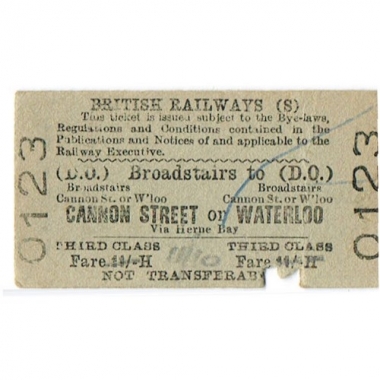 Travel Ticket, BR(S), Broadstairs (D.Q.) - Cannon Street, Serial No 0123
