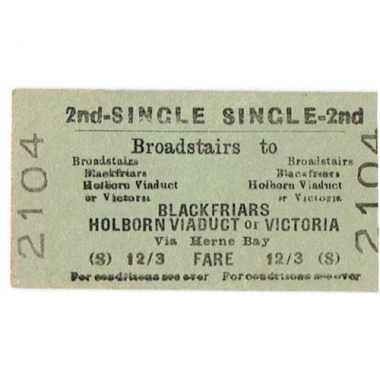 Travel Ticket, BTC(S), Broadstairs - Blackfriars, Serial No 2104