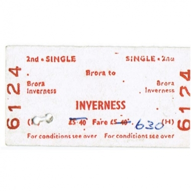 Travel Ticket, BRB(H), Brora - Inverness, Serial No 6124