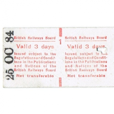 Travel Ticket, BR(N), Hebburn - Birmingham, Serial no 2384