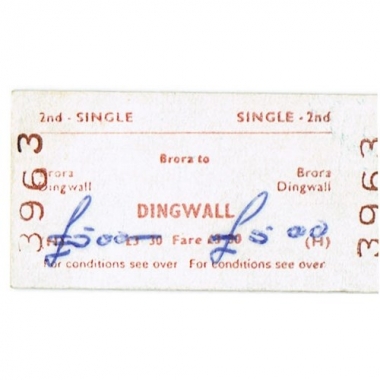 Travel Ticket, BRB(H), Brora - Dingwall, Serial No 3963