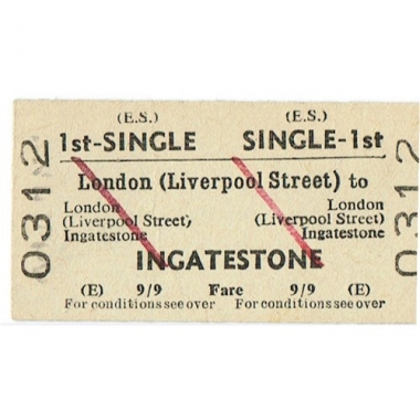 Travel Ticket, BRB(S), Liverpool Street - Ingatestone, Serial No 0312