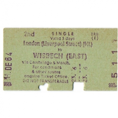 Travel Ticket, BRB(E), Liverpool Street - Wisbech (East), Serial No 5111