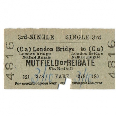 Travel Ticket, BTC(S), London Bridge - Nutfield, Serial No 4816