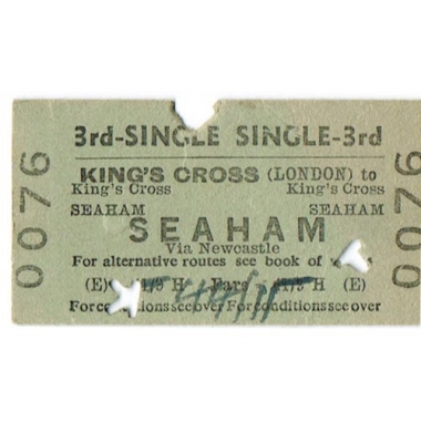 Travel Ticket, BR(E), King's Cross - Seaham, Serial No 0076