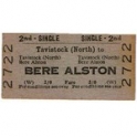 Travel Ticket, BRB(W), Tavistock (North) - Bere Alston, Serial No 2722