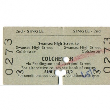 Travel Ticket, BRB(W), Swansea High Street - Colchester via Paddington, Serial No 0273