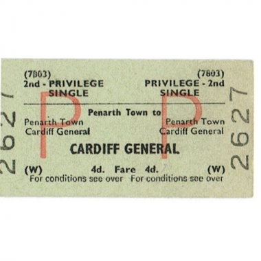 Travel Ticket, BRB(W), Penarth Town - Cardiff General, Serial No 2627