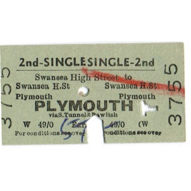 Travel Ticket, BTC(W), Swansea High Street - Plymouth, Serial No 3755