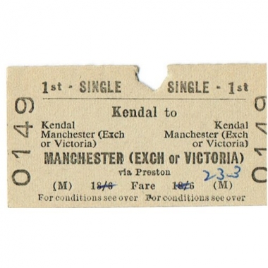 Travel Ticket, BTC(M), Kendal - Manchester (Exch or Victoria), Serial No 0149
