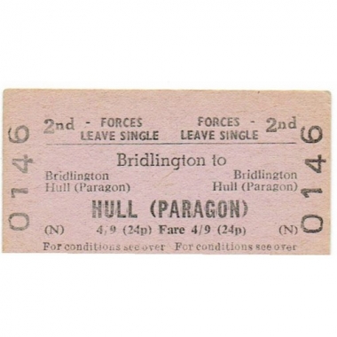 Travel Ticket, BRB(N), Bridlington - Hull (Paragon), Serial No 0146