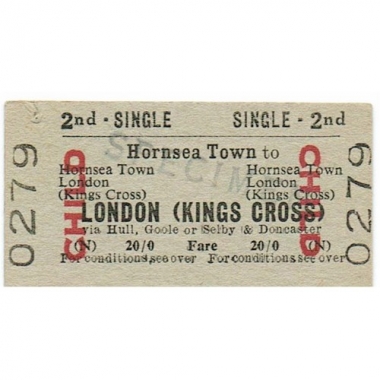 Travel Ticket, BTC(N), Hornsea Bridge - London (Kings Cross), Serial No 0561