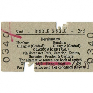 Travel Ticket, BRB(S), Horsham - Glasgow (Central), Serial No 0340