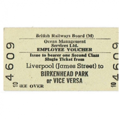 Travel Ticket, BRB(M), Liverpool (James Street) - Birkenhead Park, Employee Voucher, Serial No 4609