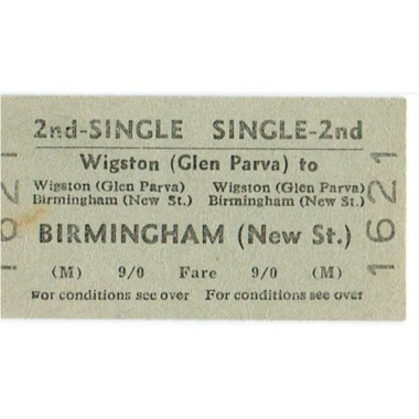Travel Ticket, BTC(M), Wigston (Glen Parva) - Birmingham (New St.), Serial No 1621