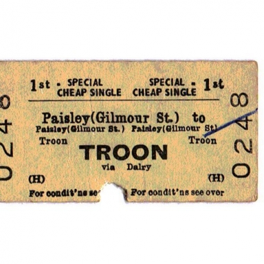 Travel Ticket, BRB(H), Paisley (Gilmour St.) - Troon, Serial No 0248