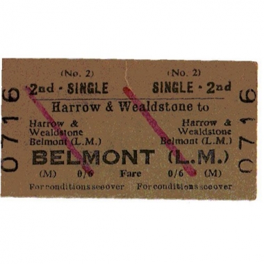 Travel Ticket, BRB(M), Harrow & Wealdstone - Belmont (LM), Serial No 0716