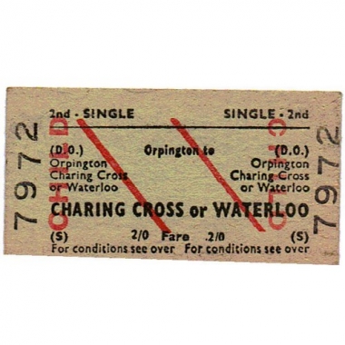 Travel Ticket, BRB(S), Orpington - Charing Cross or Waterloo, Serial no 7972