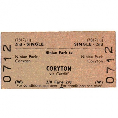 Travel Ticket, BRB(W), Ninian Park - Coryton via Cardiff, Serial no 0712