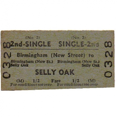 Travel Ticket, BRB(M), Birmingham (New Street) - Selly Oak, Serial no 0328
