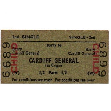 Travel Ticket, BRB(W), Barry - Cardiff General, Serial no 6689