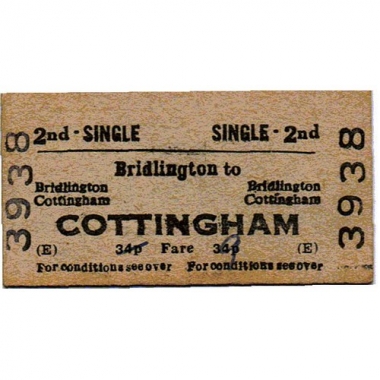 Travel Ticket, BRB(E), Bridlington - Cottingham, Serial no 3938