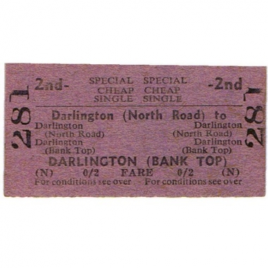 Travel Ticket, BTC(N), Darlington (North Road) - Darlington (Bank Top), Serial no 281