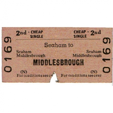 Travel Ticket, BRB(N), Seaham - Middlesbrough, Serial no 0169