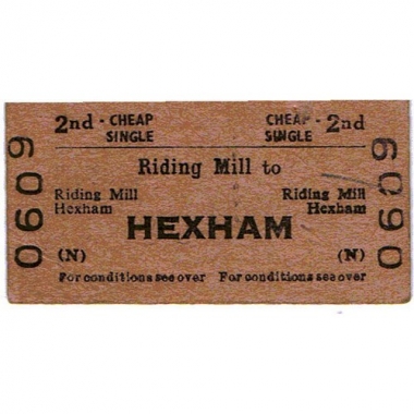 Travel Ticket, BRB(N), Riding Mill - Hexham, Serial no 0609
