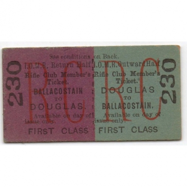 Railway Ticket, IOMR, Douglas - Ballacostain, Rifle Club Member, Serial No. 230