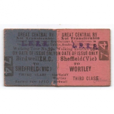 Railway Ticket, Great Central Ry (LNER stamp), Sheffield (Vic) - Wortley - Birdwell & HC - Sheffield (Vic), Walking Tour No 39a, Serial No 74