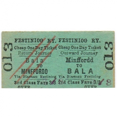 Travel Ticket, Festiniog, Minfford - Bala, Serial No 013
