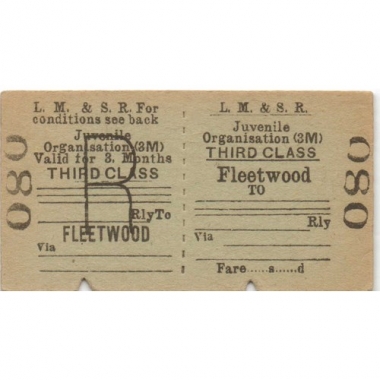 Railway Ticket, LM&SR, Fleetwood - , Juvenile Organisation (3M), Serial No 080