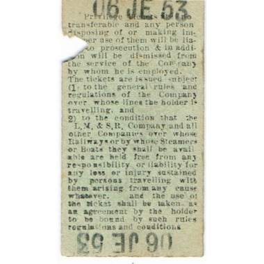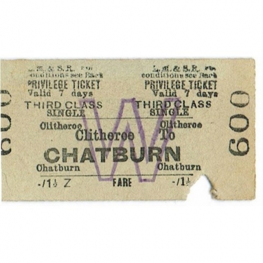 Travel Ticket, LM & SR, Clitheroe - Chatburn, Serial No 600