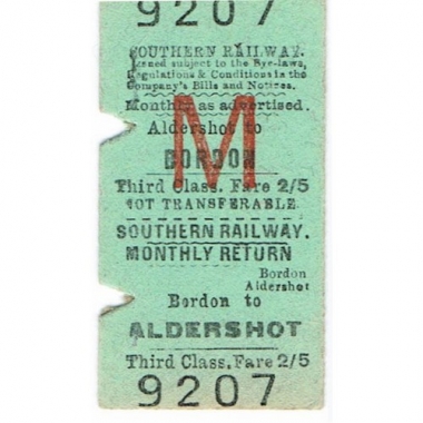 Travel Ticket, SR, Aldershot - Bordon, Serial No 9207